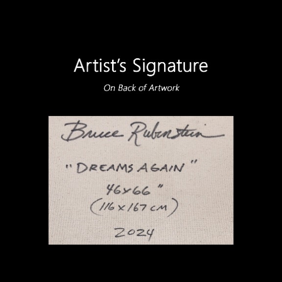 Bruce Rubenstein specializes in large-scale artworks, using huge canvases to tell his stories. Born and raised in New York, he moved to Los Angeles in 1985. His mixed media artworks defy categorization, blending abstract forms and organic shapes with subtle hints of figures and symbols. Adrien Brody and Mickey Rourke are among Rubenstein’s collectors.