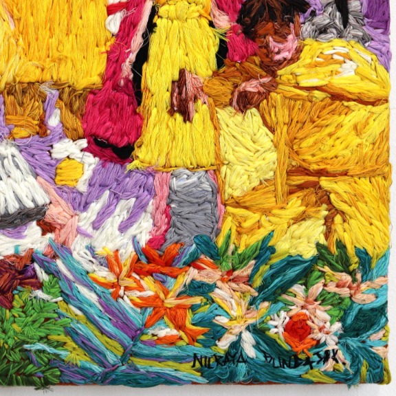 Award-winning textile artist Nilraya Bundasak was born in 1992 in Khon Kaen, Thailand. Bundasak received her MFA from Sipakorn University. She now has a studio in Bangkok. Bundasak has won multiple consecutive awards for her large-scale embroidery, including the Young Artists Talent Award, 3rd place in the 18th Panasonic Contemporary Painting Competition, and three White Elephant Art Awards.