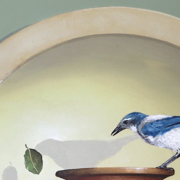 Jeff Faust, a California self-taught artist, finds strength in simplicity, shaping his unique style—dubbed "subtle surrealism" or "visual forms of the written word." His paintings feature intriguing juxtapositions, blending clouds, ropes, leaves, and eggs to evoke nuanced narratives. Faust's creative process is dynamic and thought-provoking. Through his art, Faust aims to create windows that offer viewers a respite from the loudness of the world, encouraging them to re-center themselves and find solace in the simplicity and complexity of his visual narratives.